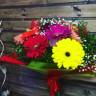 Необыкновенной красоты цветы и букеты собранные из одних Гербер, получаются при выбранной композиции разных видов комбинированной цветовой гаммы .Наиболее гармонично смотрится при создании букета сочетание желтых, и фиолетовых цветков или светло бордовых соцветий с белой цветовой гаммой. Добавляет особую изюминку красивые цветки Гербер и веточки аспарагуса либо цветущего папоротника